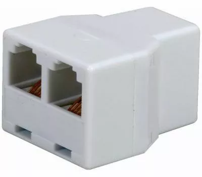 RCA, white, 2 way in line cord splitter, extends the reach of a phone cord & converts it into 2 jacks.