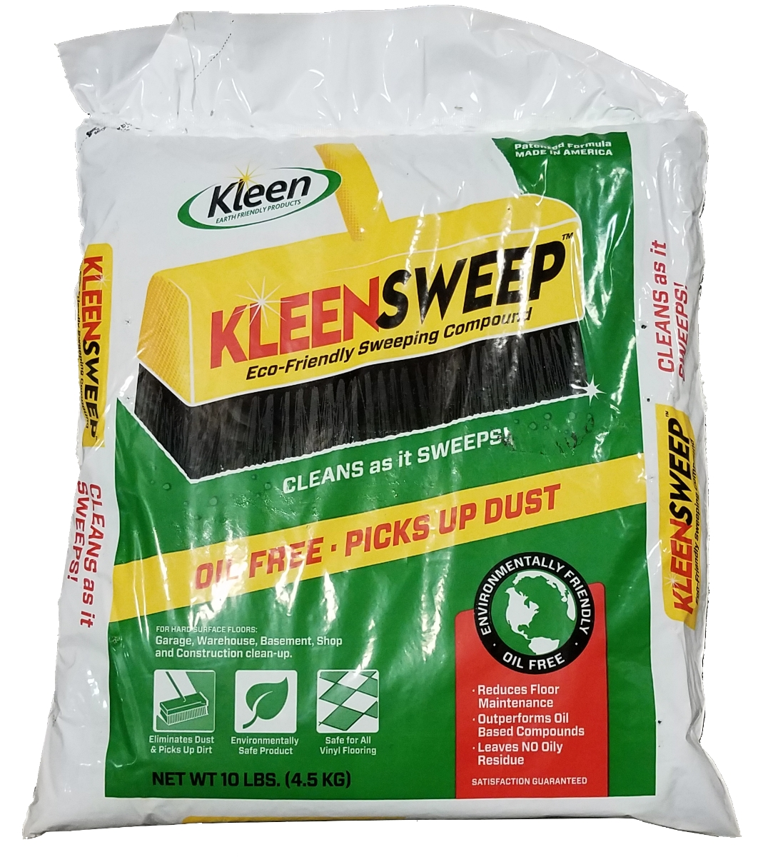 Kleen sweep is a non-petroleum based sweeping compound with enhanced moisture retention and absorption. Patented water based sweeping compound out performs oil based products and environmentally safe with contains no petroleum oil, toxic or hazardous ingredients. Excellent dust control & pick up on cement, vinyl, rubber, asphalt, composition & other floors.