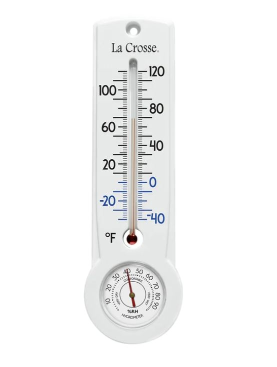 The 8.75″ Thermometer Hygrometer from La Crosse Technology is a durable, high impact, and fade-resistant thermometer that is bold and easy to read. It includes a secret key hider compartment on back to store spare key.