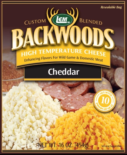 Our Backwoods high temperature cheese is a great item for sausage making. Add cheese to your sausage and give it something extra. Cheese will stay in chunks up to 400 degrees. Add about 10% cheese (1 lb. of cheese to 10 lbs. of meat). Cheese will last up to 12 months at 32 degrees F to 45 degrees F and can be frozen. Add to meat and sausage seasoning while mixing, and cook as usual. Comes in 1 lb. bags in cheddar, hot pepper, swiss and mozzarella flavors. Gluten free. Refrigerate upon receipt.