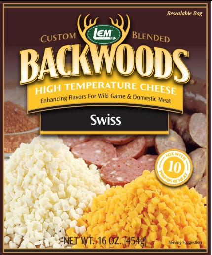 Our Backwoods high temperature cheese is a great item for sausage making. Add cheese to your sausage and give it something extra. Cheese will stay in chunks up to 400 degrees. Add about 10% cheese (1 lb. of cheese to 10 lbs. of meat). Cheese will last up to 12 months at 32 degrees F to 45 degrees F and can be frozen. Add to meat and sausage seasoning while mixing, and cook as usual. Comes in 1 lb. bags in cheddar, hot pepper, swiss and mozzarella flavors. Gluten free. Refrigerate upon receipt.
