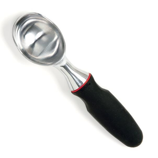 Scoops ice cream, sherbet and other frozen desserts. Scoop is made of cast aluminum. The handle has a patented shape, ergonomically designed to fit perfectly for right and left hand use.