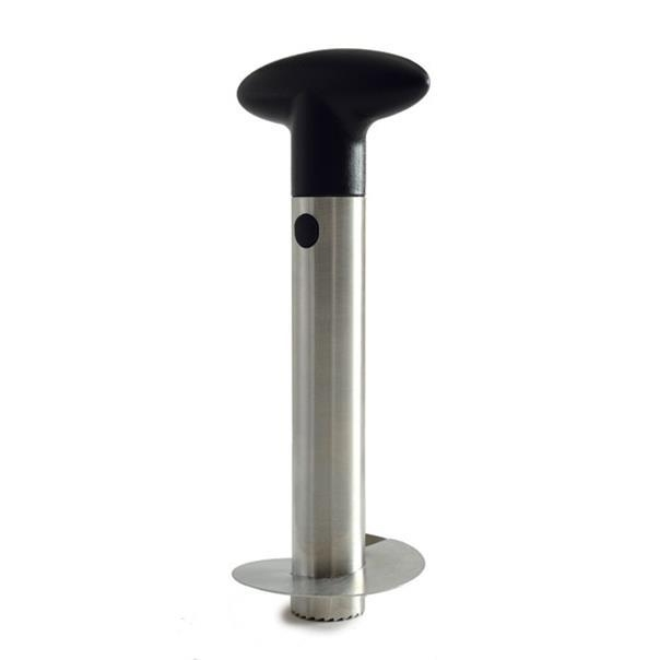 Effortlessly core and slice a whole pineapple. Uniform slices and juices are retained with minimal waste. Comfortable nylon handle with stainless steel body and blade. Works best with 3-4 lb pineapples.
