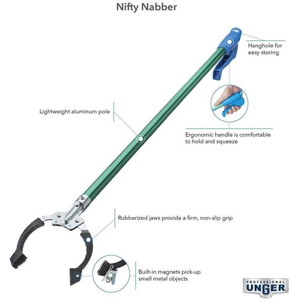 36 “, Nifty Nabber Pick Up Tool, Aluminum Handle, Ideal For Picking Up Bottles & Garbage Outdoors As Well As Out Of Reach Items, For Consumer & Professional, Holds 8 LB.